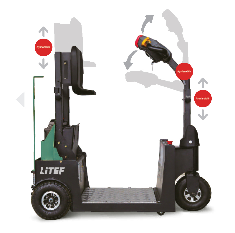 Dört yönlü kontrol kolu, kademesiz hız kontrolü ve elektromanyetik fren sistemi sayesinde operatöre güvenli ve hassas kullanım imkanı sunar. Ayarlanabilir sırt dayanağı ve ayakta kullanım ergonomisi ile uzun süreli operasyonlarda konfor sağlar. Bu özellikleriyle elektrikli depo çekici segmentinde kullanıcı dostu bir çözüm sunar. :contentReference[oaicite:1]{index=1}